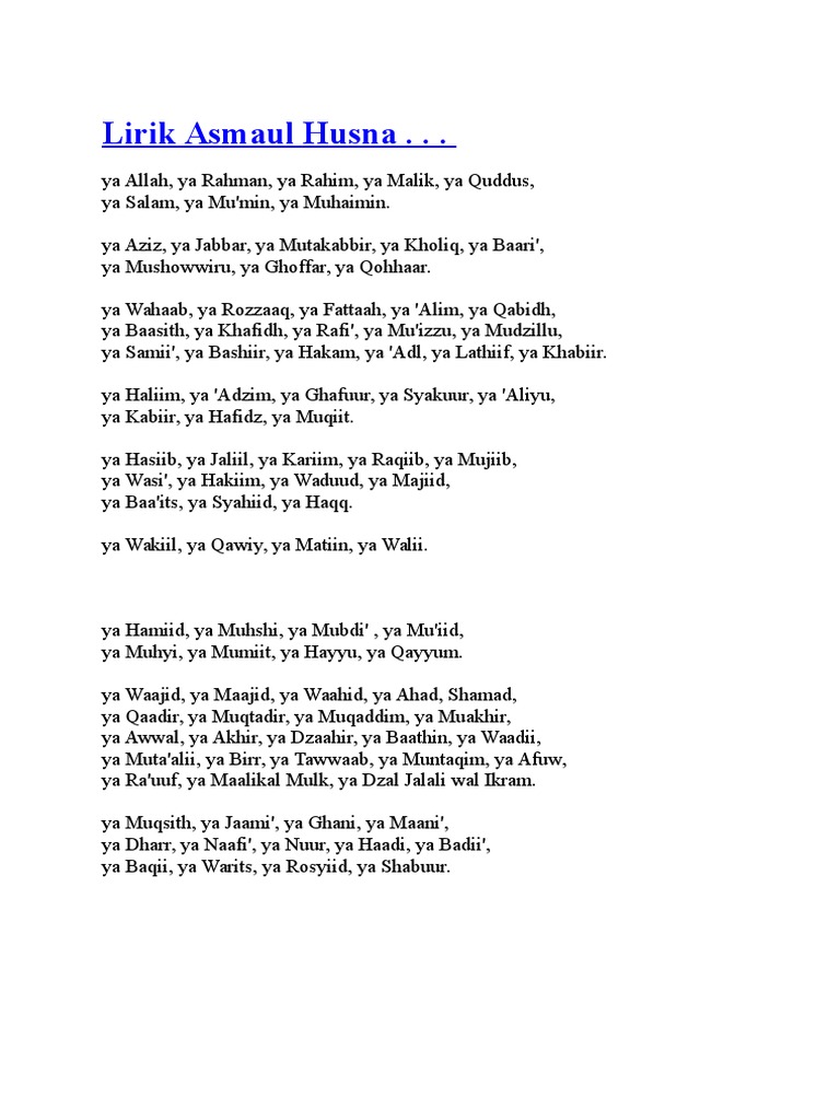 Asmaul Husna Lirik - Tips pencarian lirik favorit anda.