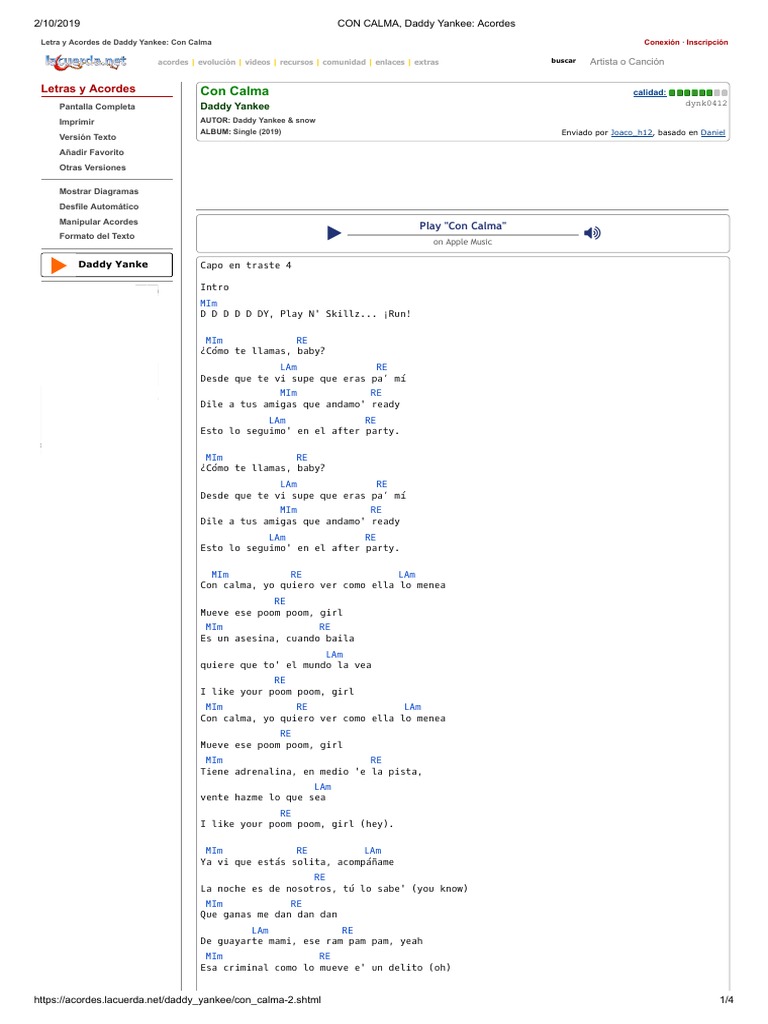 Calma Acordes - El resto va con los mismos acordes.
