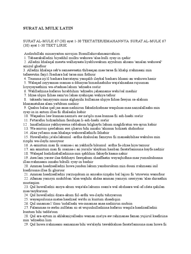 Surah Al Mulk Ayat 9 19 Lengkap Dalam Bahasa Arab Latin Dan Terjemahanya Dalam Bahasa Indonesia Jurnal Garut Surat ini diturunkan di kota mekkah sehingga masuk baiklah tanpa panjang lebar berikut ini teks bacaan surat al mulk lengkap dalam tulisan arab dan latin beserta terjemahan bahasa indonesianya.